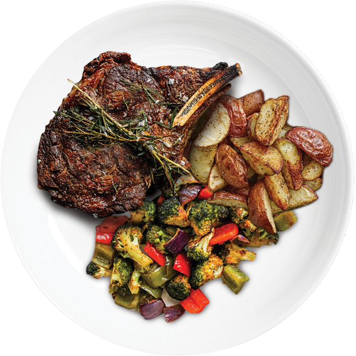 16oz. Grass fed steak grilled served with fresh farm vegetables and mashed potatoes.