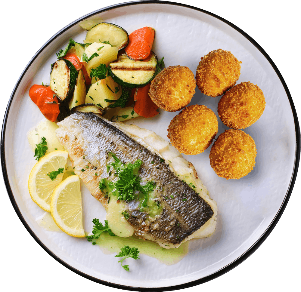 Pan seared, finished with hot & sweet cherry peppers, balsamic reduction served with fresh farm vegetables and roasted potatoes.