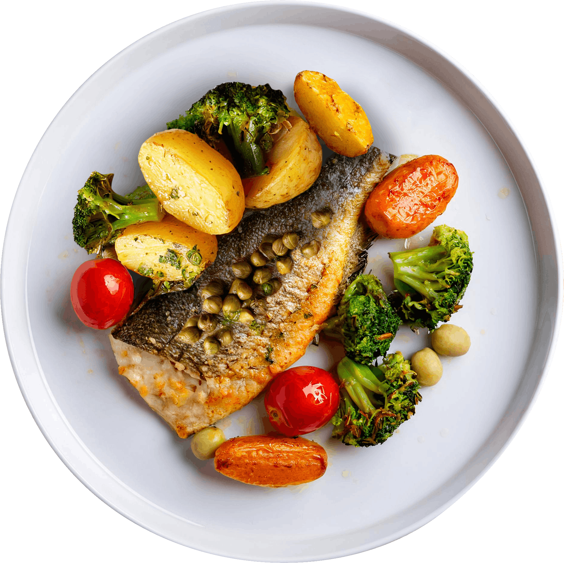 deboned whole branzino sauteed in a white wine, capers and cherry tomato served with farm fresh vegetables and potato croquette