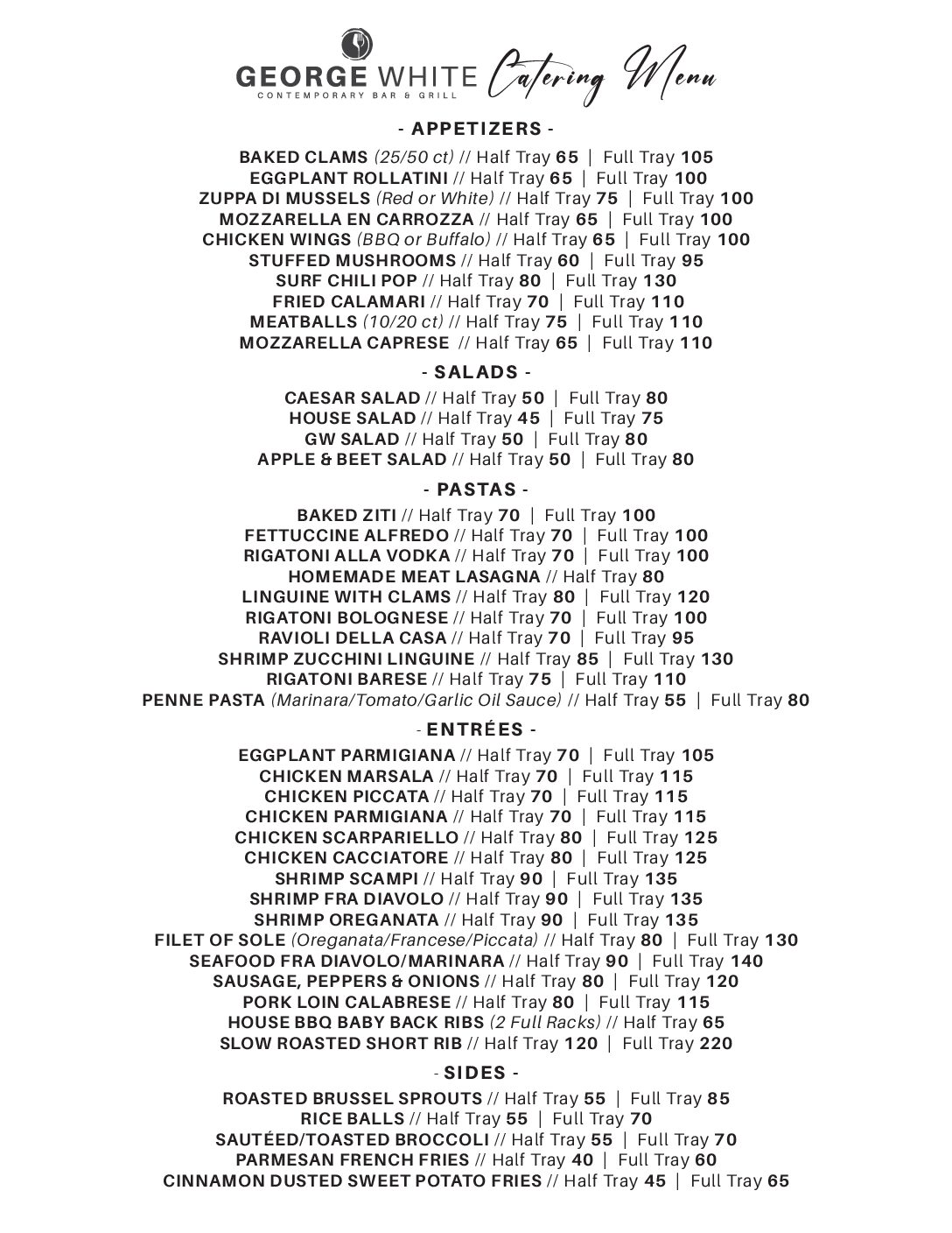 Catering George White proudly provides in-house catering alongside off-premise catering for private events.